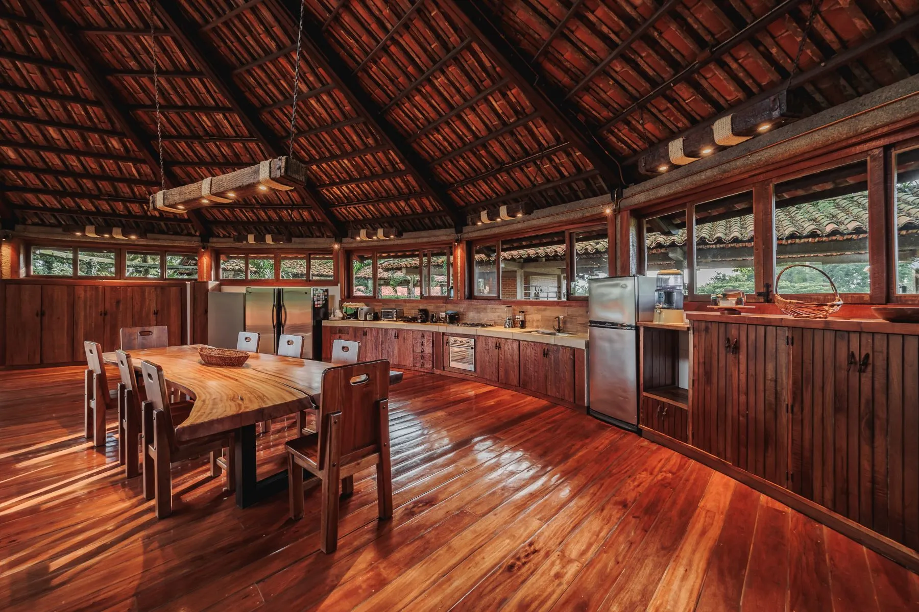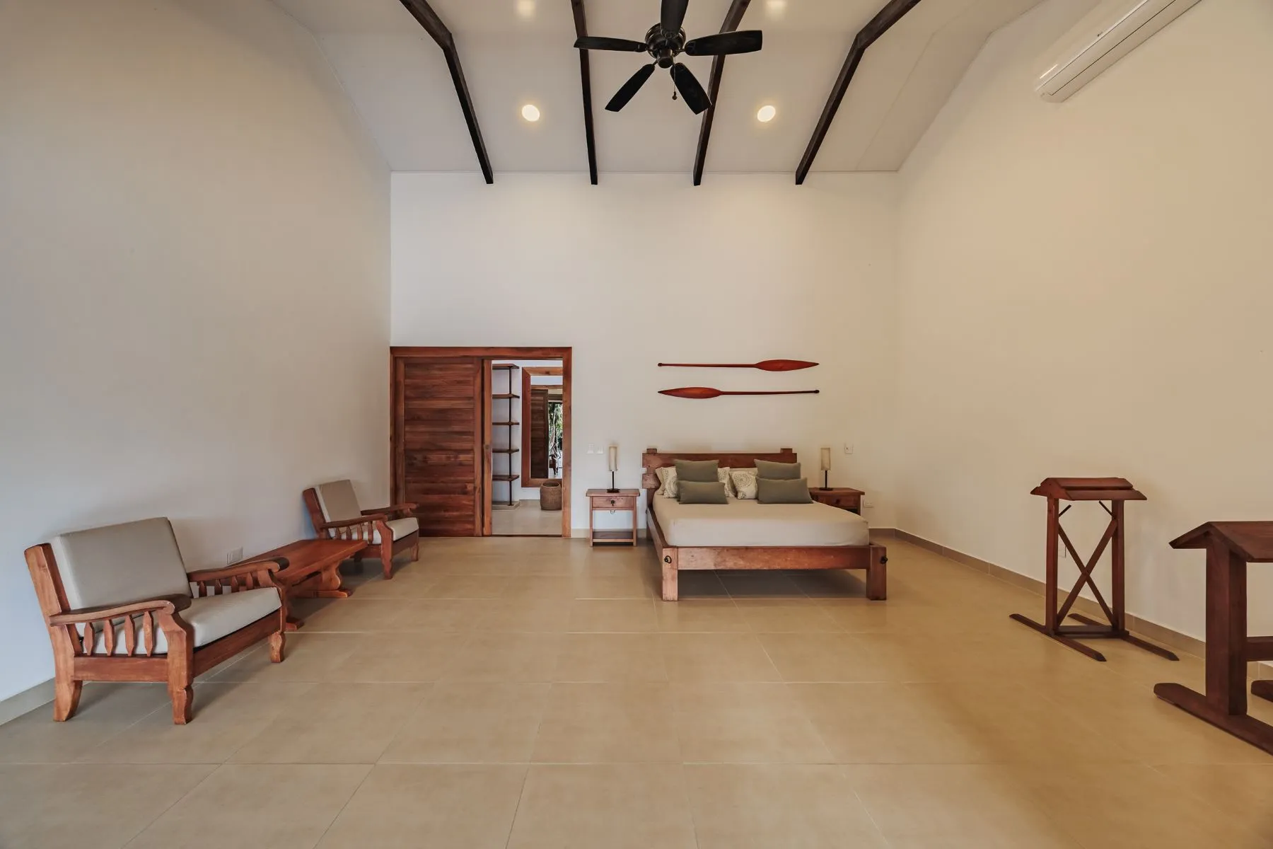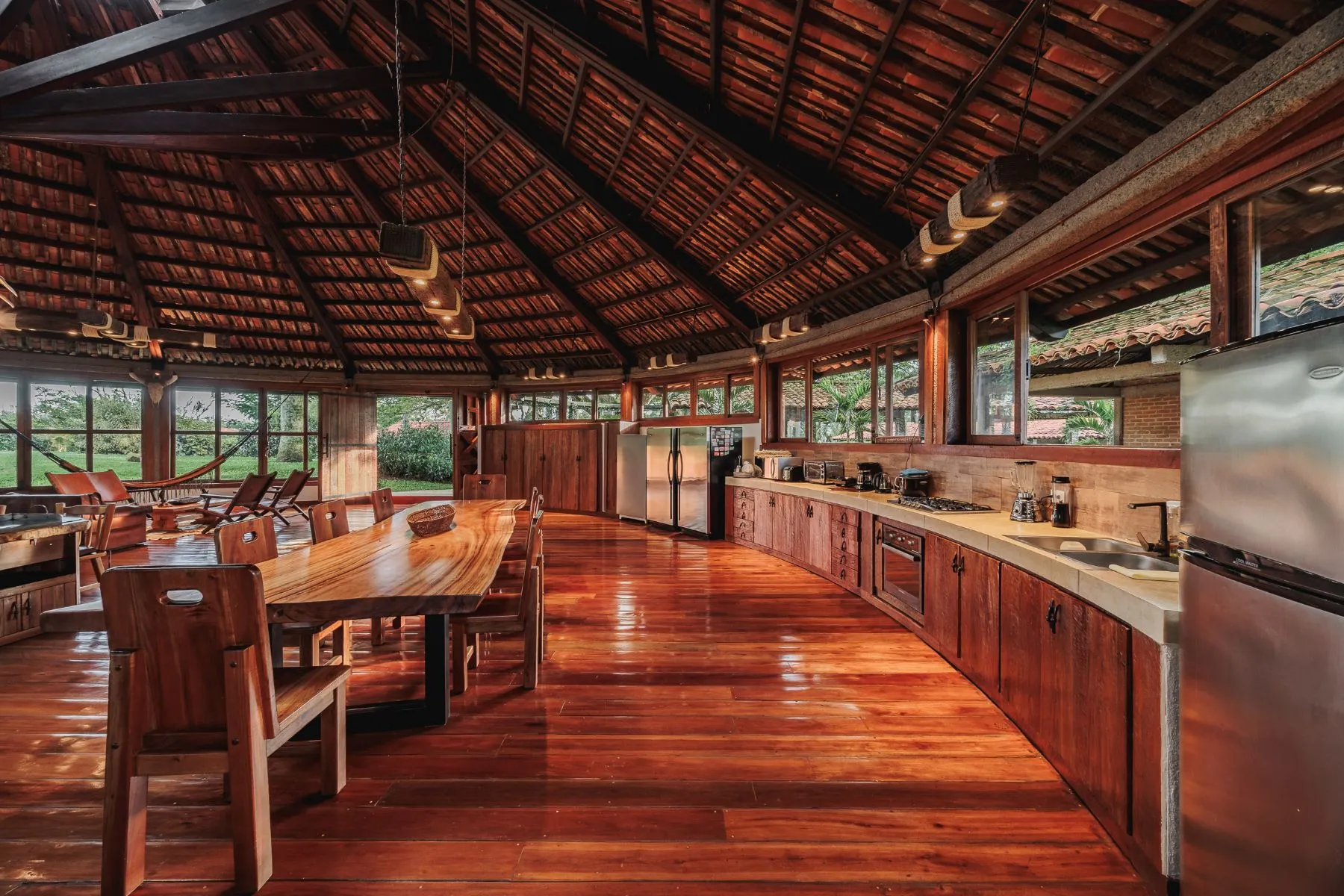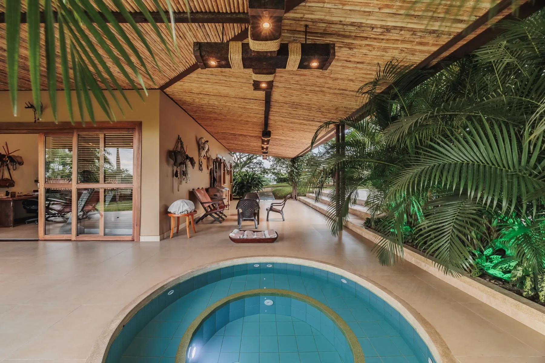 Los espacios interiores se abren hacia el exterior de manera fluida. Cuatro salas y cuatro comedores, cada uno con su ambiente propio, permiten disfrutar de momentos diferentes a lo largo del día. Desde un desayuno tranquilo bajo la sombra de los árboles hasta una conversación junto a la piscina al final de la tarde, todo invita a vivir despacio y con propósito.