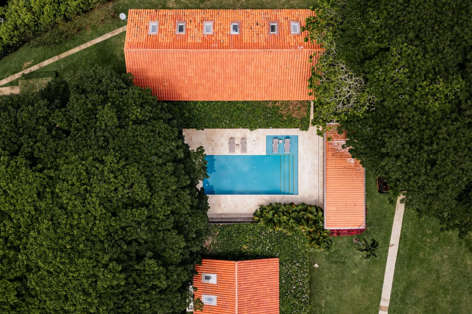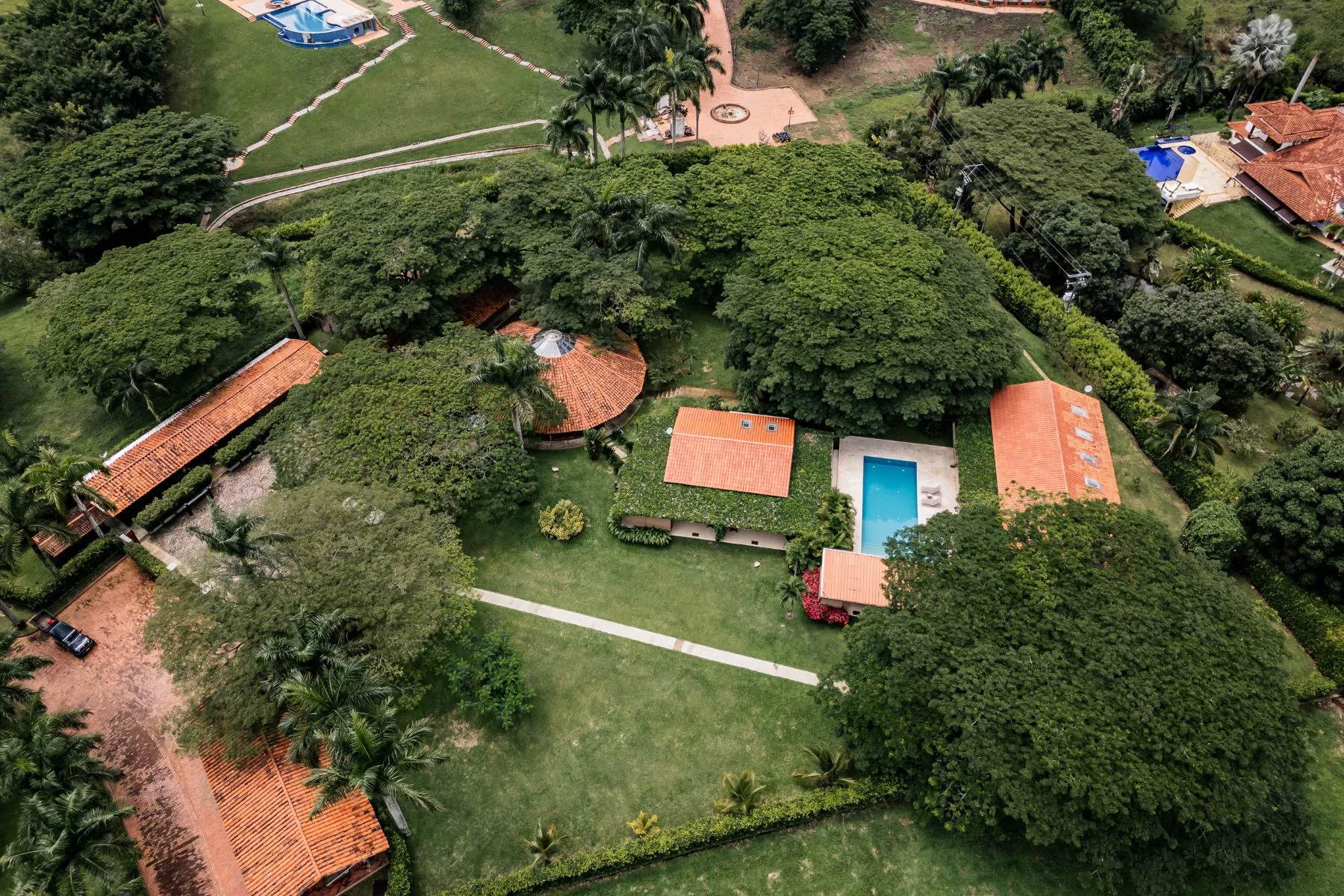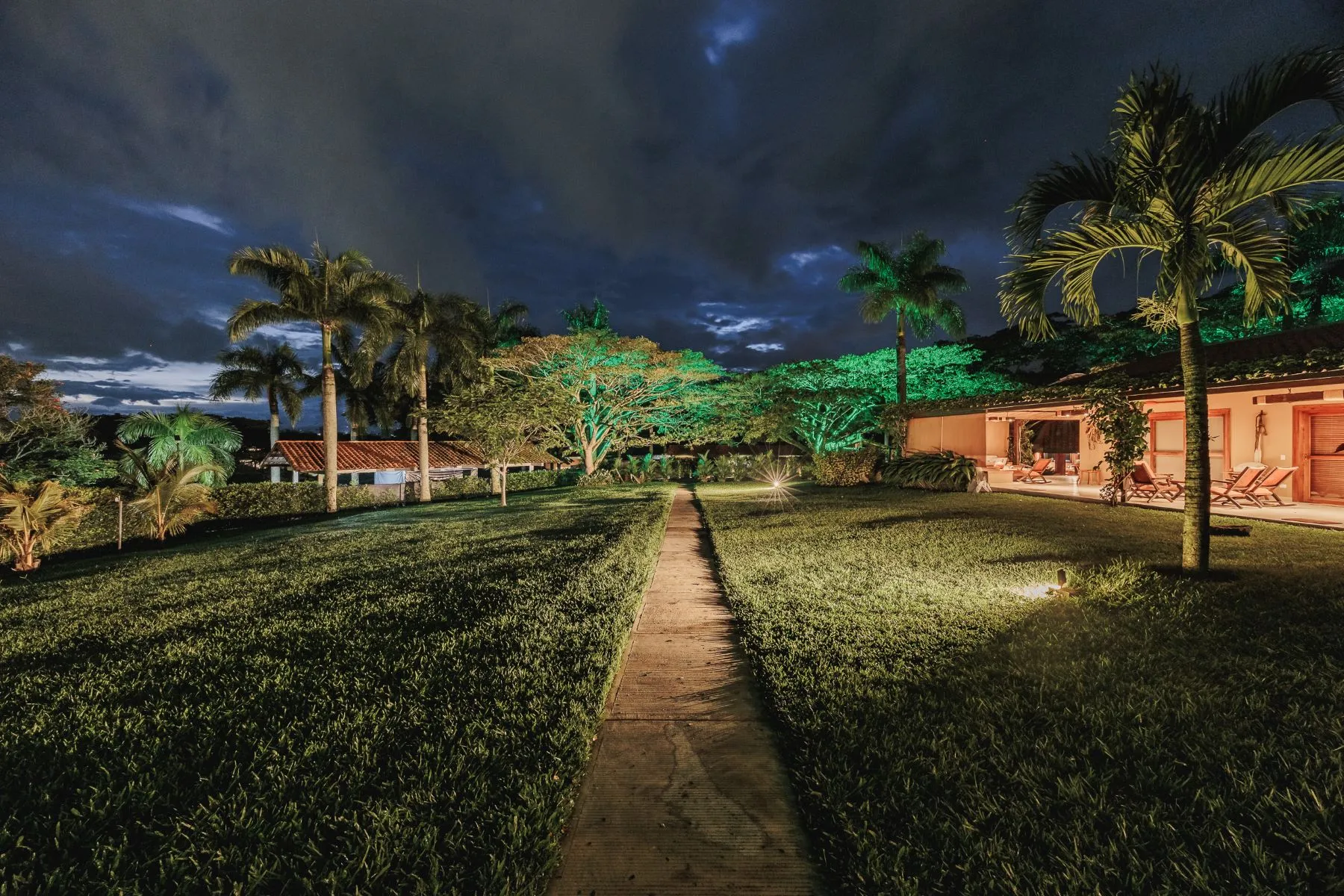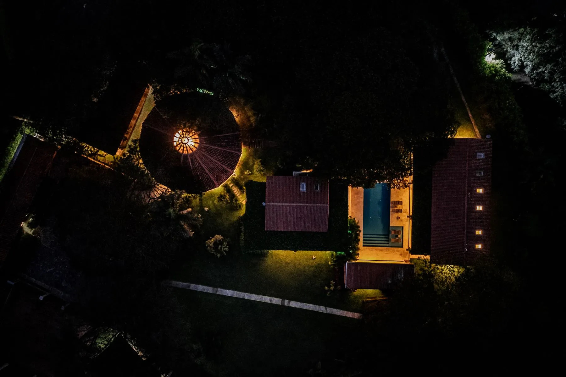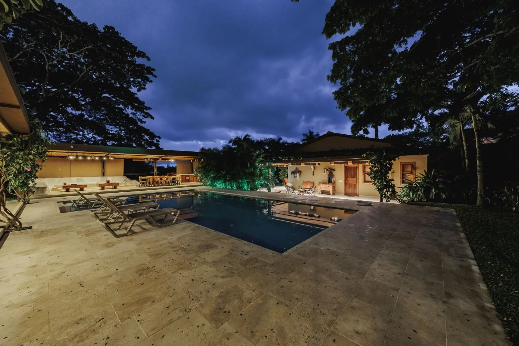 Los espacios interiores se abren hacia el exterior de manera fluida. Cuatro salas y cuatro comedores, cada uno con su ambiente propio, permiten disfrutar de momentos diferentes a lo largo del día. Desde un desayuno tranquilo bajo la sombra de los árboles hasta una conversación junto a la piscina al final de la tarde, todo invita a vivir despacio y con propósito.