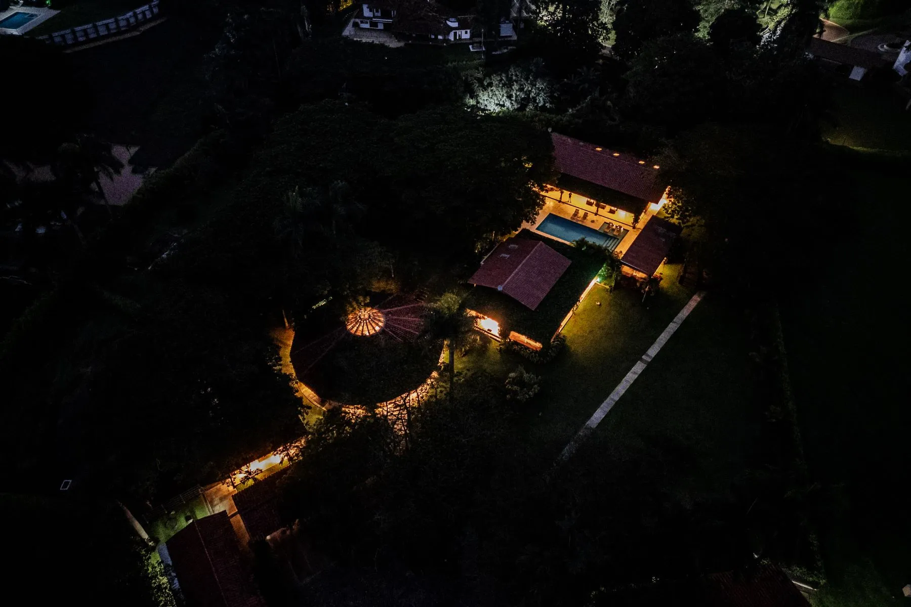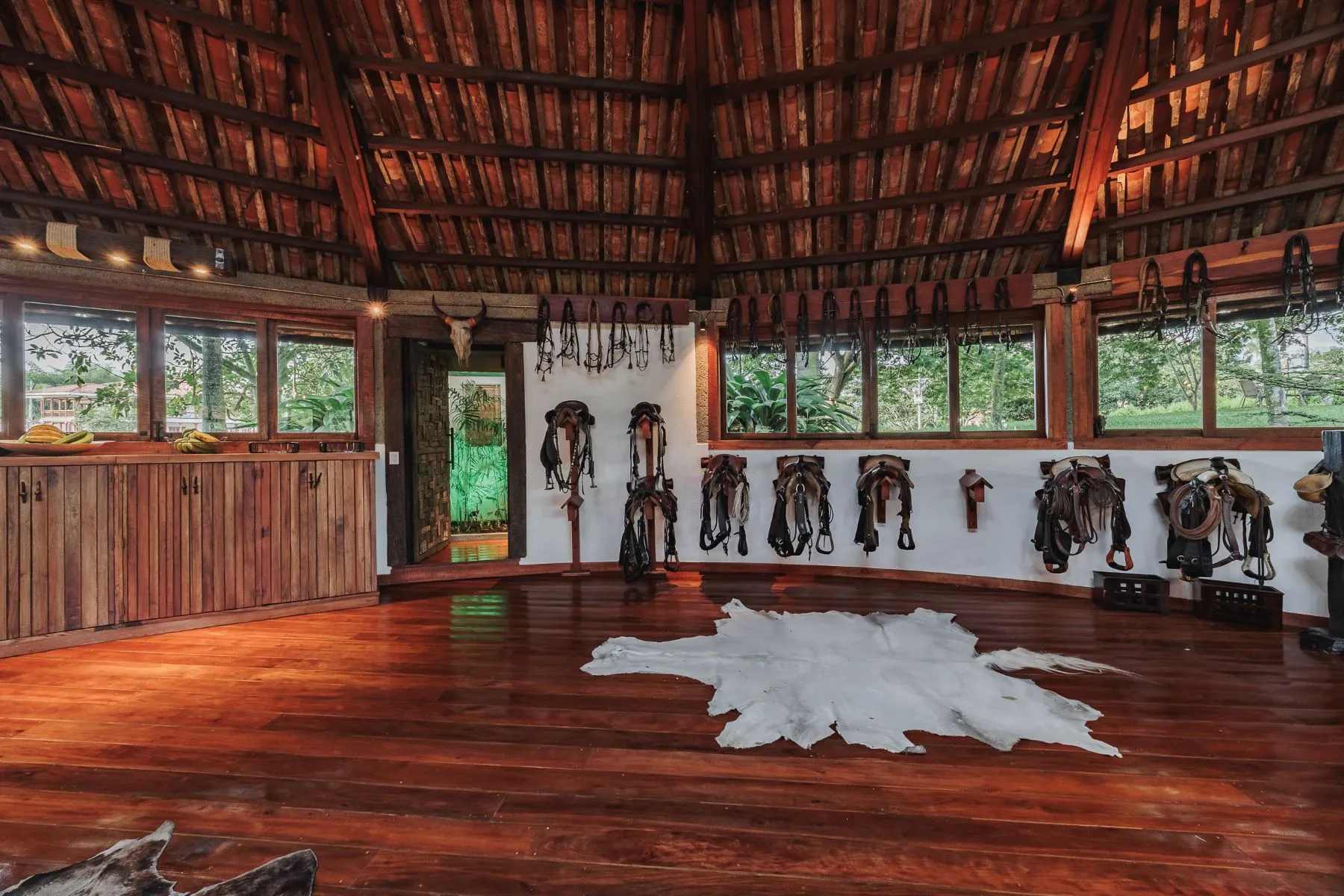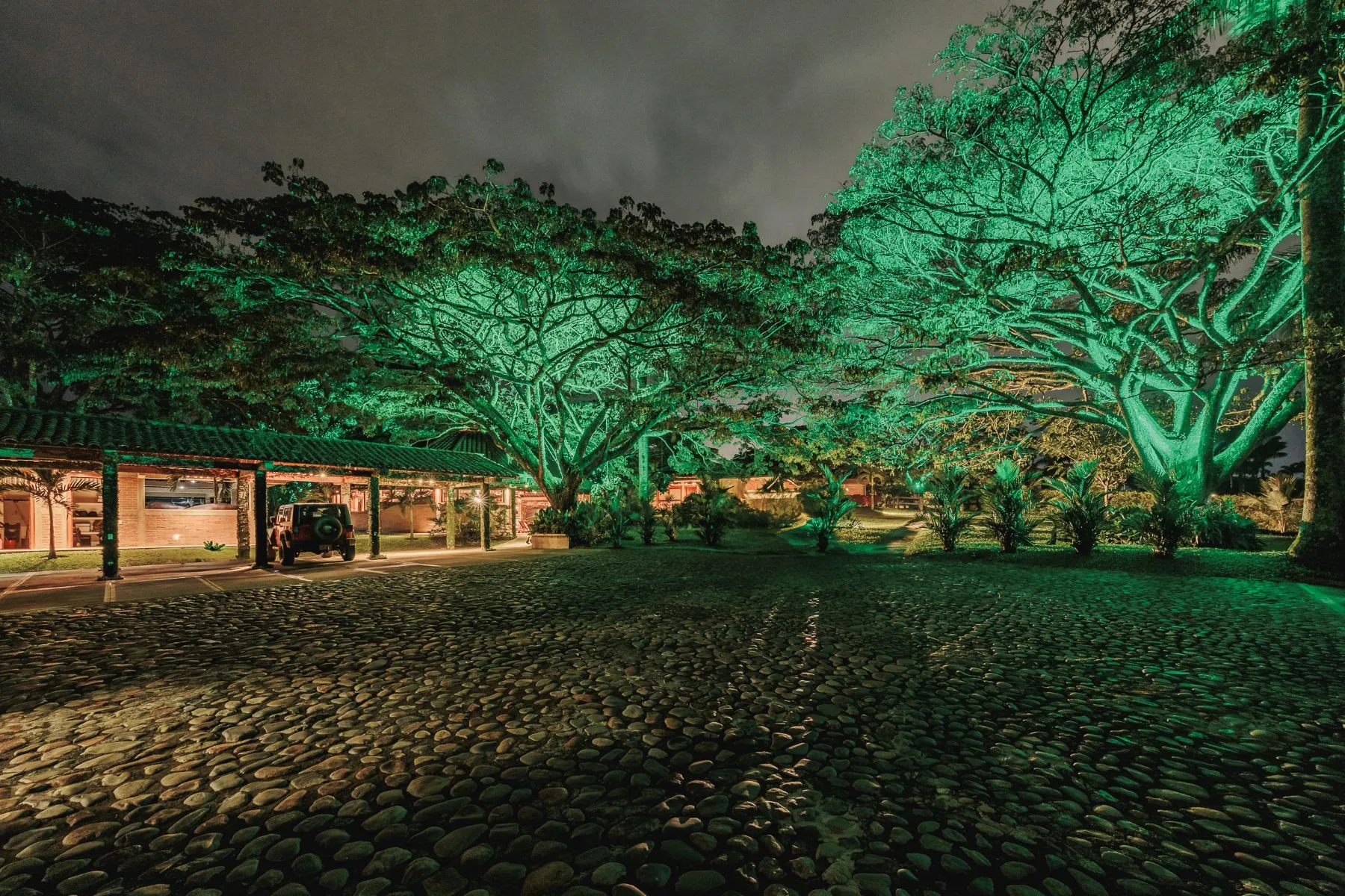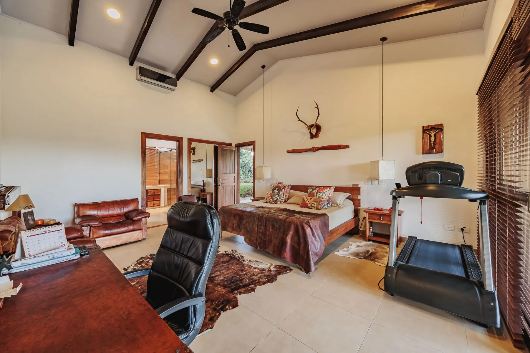 Los espacios interiores se abren hacia el exterior de manera fluida. Cuatro salas y cuatro comedores, cada uno con su ambiente propio, permiten disfrutar de momentos diferentes a lo largo del día. Desde un desayuno tranquilo bajo la sombra de los árboles hasta una conversación junto a la piscina al final de la tarde, todo invita a vivir despacio y con propósito.